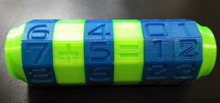En esta entrada voy a presentar un tubo matemático. El diseño que he utilizado es el de BQ, que en realidad es un remix del de Sebphestos, que a su vez es el rediseño de pauloblank. Bueno, la historia no para ahí, porque este último viene del de cristinachum. Esta es la grandeza de las licencias que permiten obras derivadas y volver a compartir las creaciones. A lo que iba, este diseño en concreto me ha gustado porque el cilindro interior no es liso, sino que presenta unos surcos sobre los que se inserta un clip que llevan las ruedas móviles de los números. Lo único que he hecho es cambiar la forma de las tapas, para que parezca más una lata de refresco. Vaya por delante que a este objeto le llamo tubo matemático porque no sé muy bien cómo traducir math spinner sin que la cosa quede muy ortopédica.